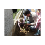 Le "Coccinelle di Biribum", i nonni, i bambini seminano nell'orto della Casa Accoglienza e in Candiolo i semi delle Zucche Solidali.